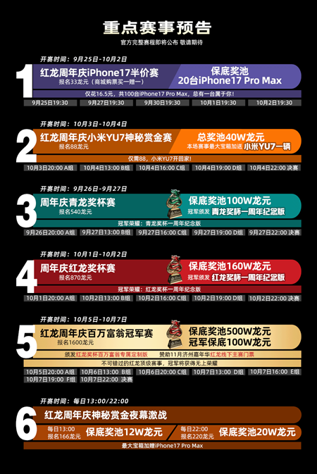 红龙一周年庆典狂欢赛事节重点赛事预告新鲜出炉
